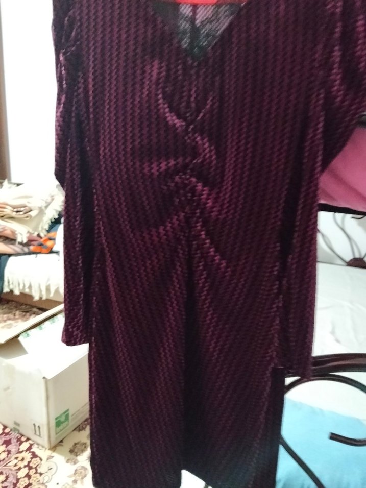 Uzun kollu, V yakalı bordo kadife dokusu ve midi boyu ile ofis kullanımı için uygun.