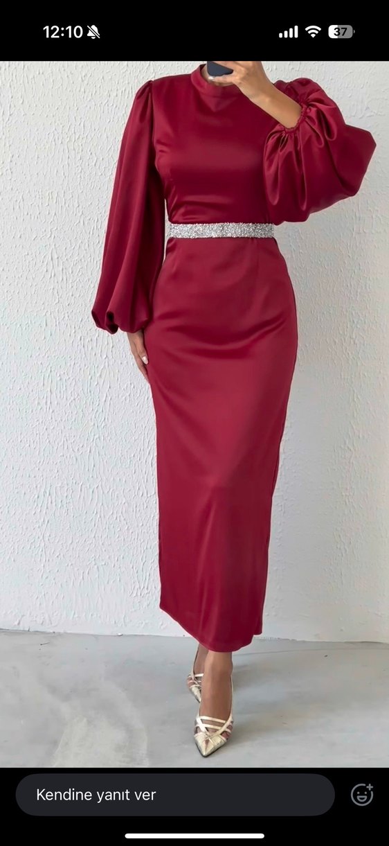 Bordo renkte, drapeli uzun kollu ve kayık yaka kadın abiye elbise. Parlak kumaş ve klasik duruşuyla ofis için uygun şık bir model. ✨ Önünde 2 tane belli olmayan ip çekipi var fiyata yansıttım