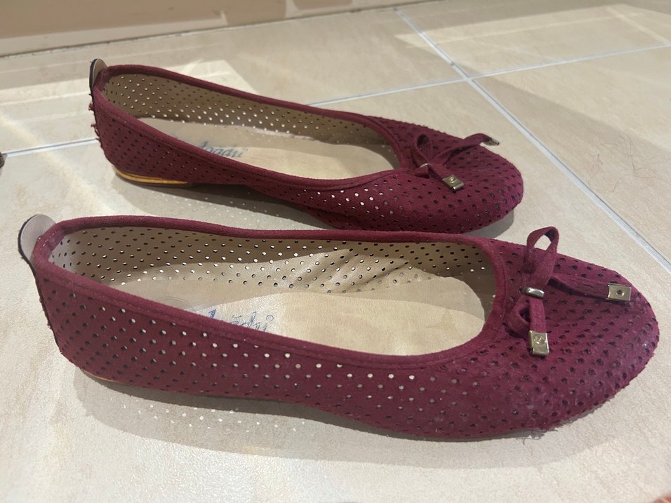 Az giymiştim. Çok rahat bir babet. Ayağınız genişse de olur. Markasını bilmiyorum. Kenarlarında az kusur var ama delik değil