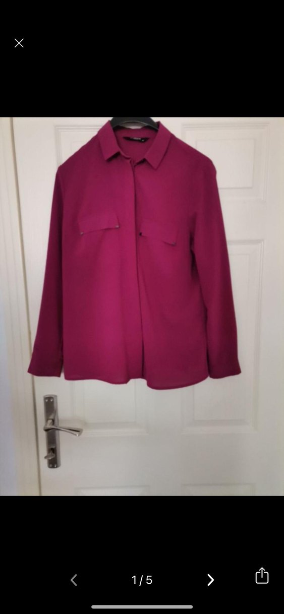Kadınlar için uzun kollu, düğmeli, notched lapel yakalı bordo basic gömlek. Rahat kesim ve midi boyda, yumuşak kumaştan üretilmiştir. Ofis kullanımı için uygundur.