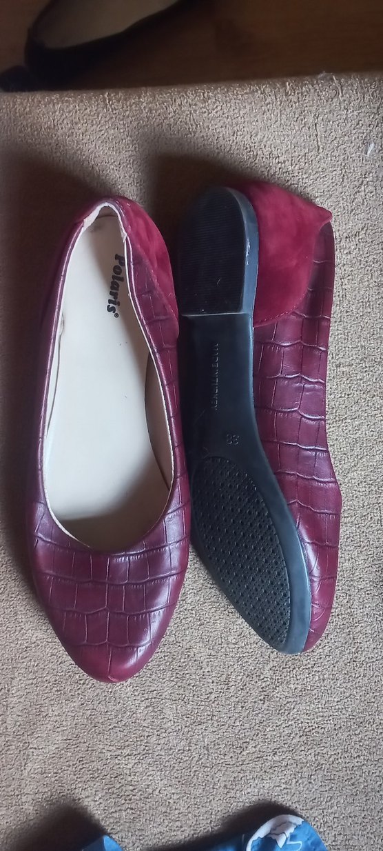 Bordo renkli, blok topuklu ve kauçuk tabanlı kadın babet ayakkabılar. Katlı ve desensiz tasarımıyla günlük kullanıma uygundur.