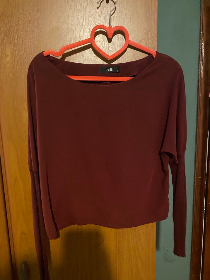 Bordo renkli kumaştan, yuvarlak yaka ve uzun kollu, salaş kesim kadın sweatshirt. Minimalist, desensiz ve rahat bir tarza sahip.