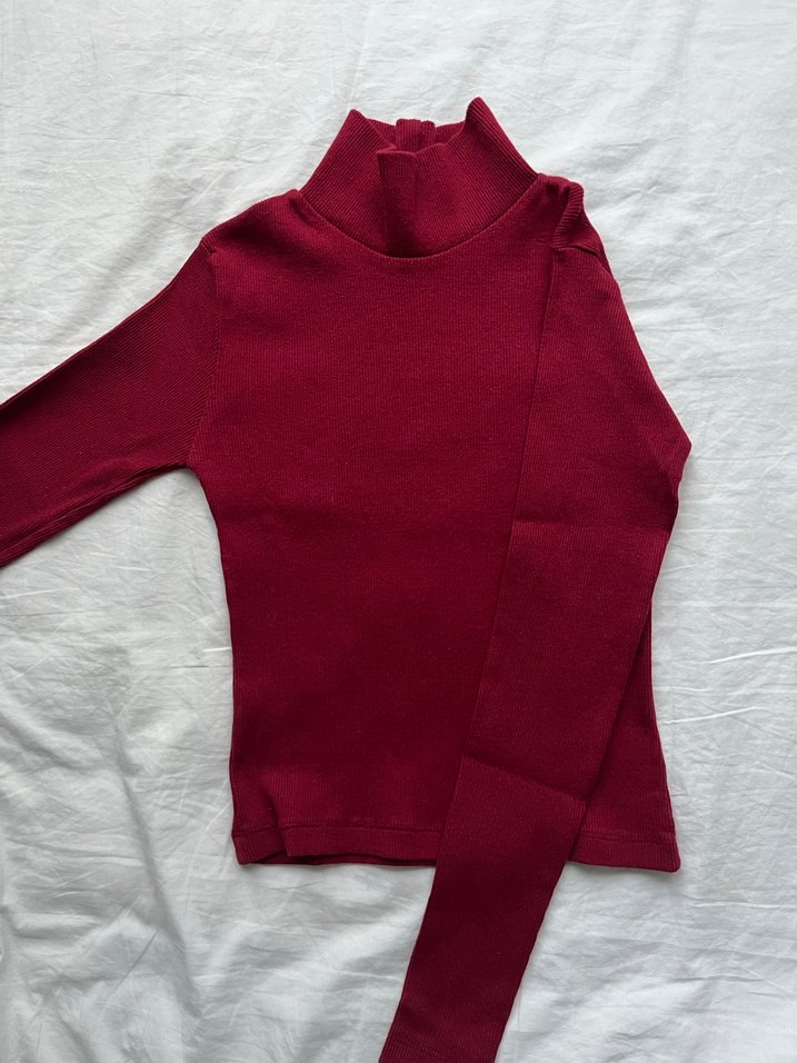Hiç giyilmedi. Defosu yoktur. Fitted kesim, bordo renkli boğazlı ve uzun kollu kazak. Yumuşak örgü kumaştan, sade ve desen içermeyen tasarım günlük kullanıma uygundur.