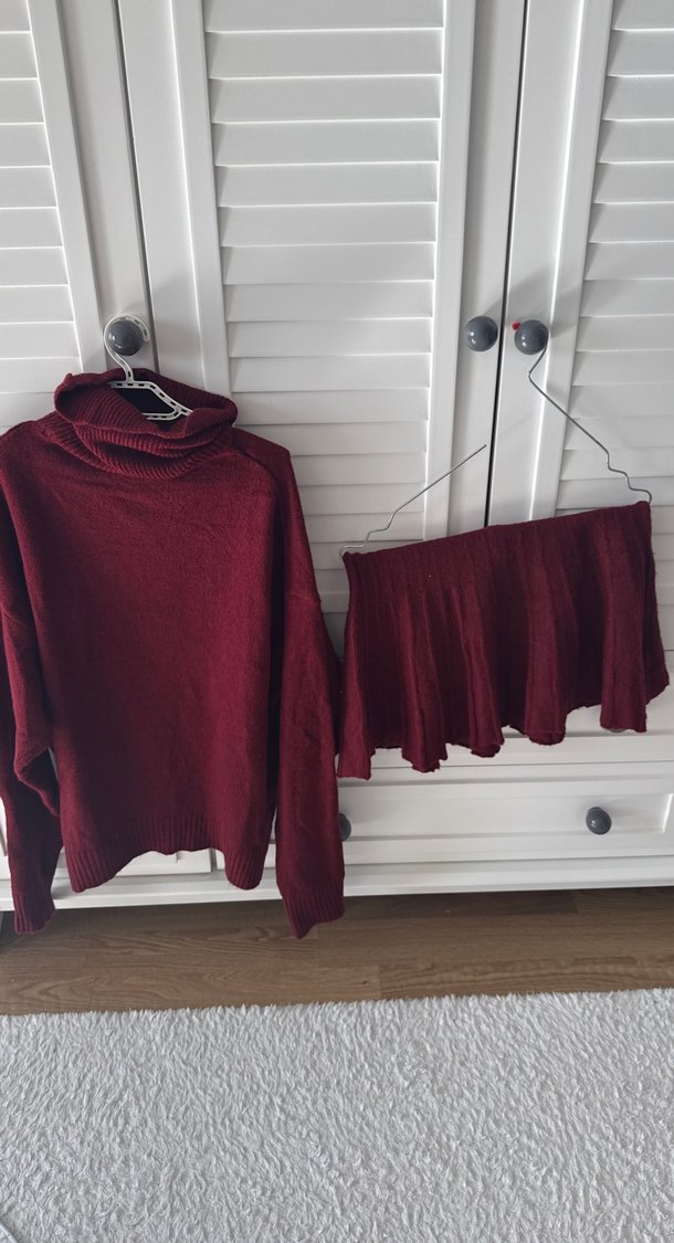 Bordo renkli, boğazlı ve örgü dokulu, bol kesim kadın kazağıdır. Uzun kollu ve normal boyda, günlük kullanıma uygun rahat ve temel bir stildir. Kumaşı yumuşak ve sıcaktır.