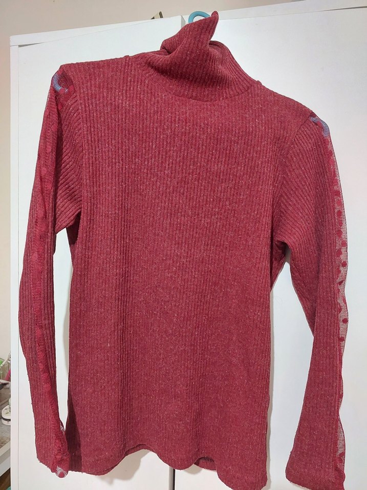 Bordo renkli, boğazlı ve uzun kollu, yumuşak yün kumaştan örülmüş, ince kesim kadın kazak. Rahat ve gündelik kullanıma uygun.