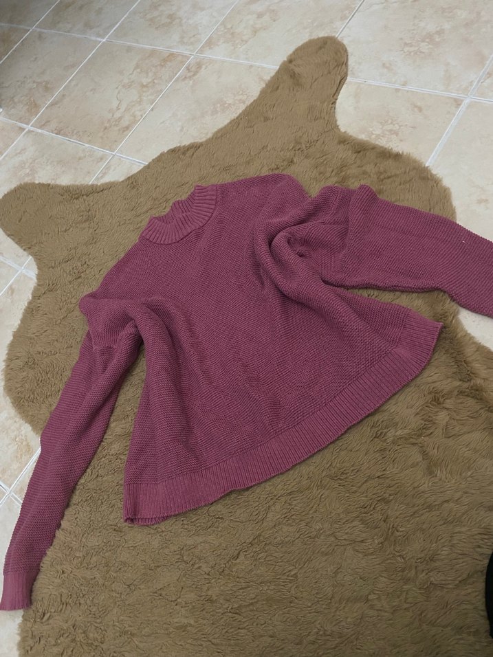 Bordo renkli, uzun kollu, boğazlı, örme kumaştan yapılmış bol kesim bir kazaktır. Düz ve normal uzunluktadır, günlük kullanıma uygundur.