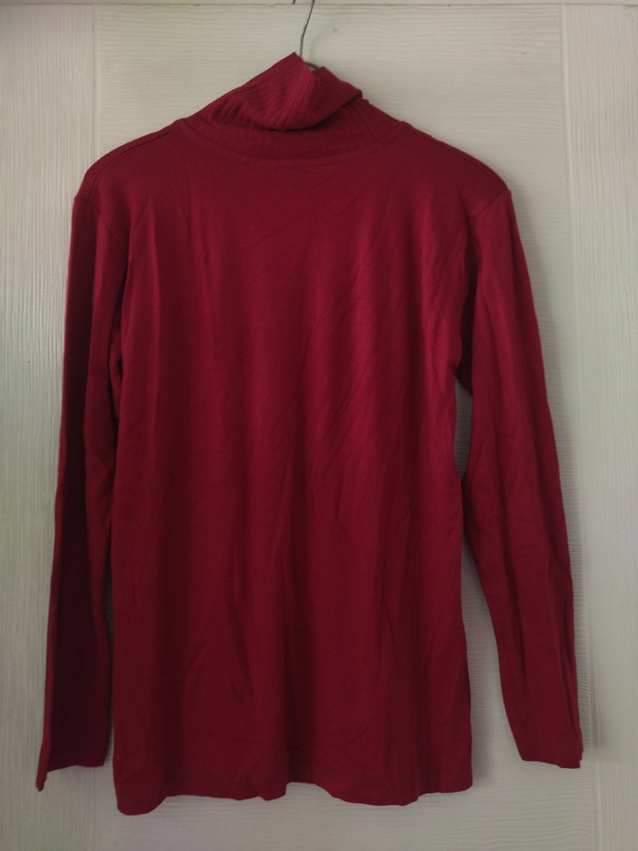 Bordo boğazlı ve uzun kollu, ince penye kumaştan yapılmış, sade ve şık, günlük kullanıma uygun dar kesim kadın triko.