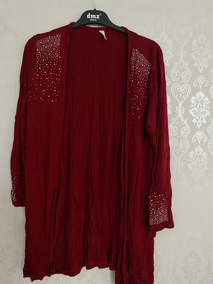 Bordo renkli, uzun kollu ve bol kesim kadın sabahlık. Parlak nakış detaylarıyla bohem tarzını yansıtıyor. Uzun boyda ve rahat bir siluete sahip.