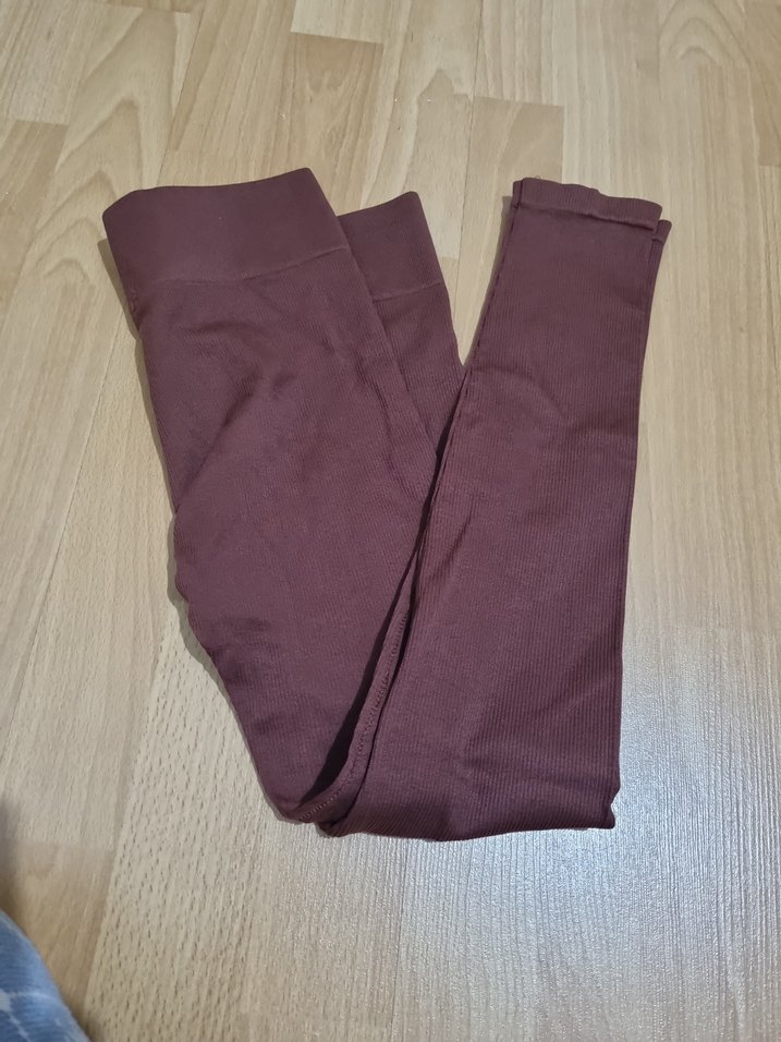 Bordo renkli, dar kesim ve boyda, yumuşak sentetik kumaştan kadın tayt. Günlük kullanım için rahat ve şık bir tercih.