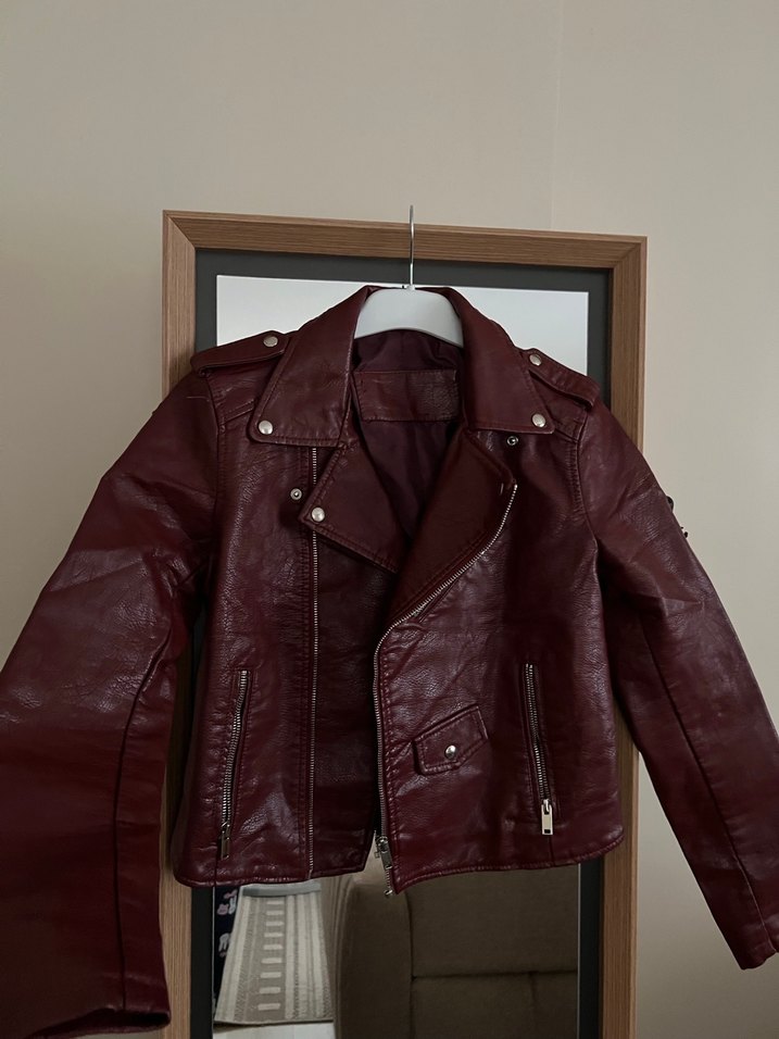 Bordo Kadın Deri Biker Ceket