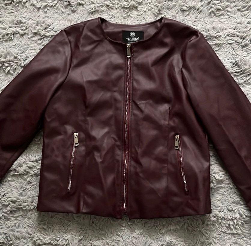 Bordo Kadın Deri Fermuarlı Ceket
