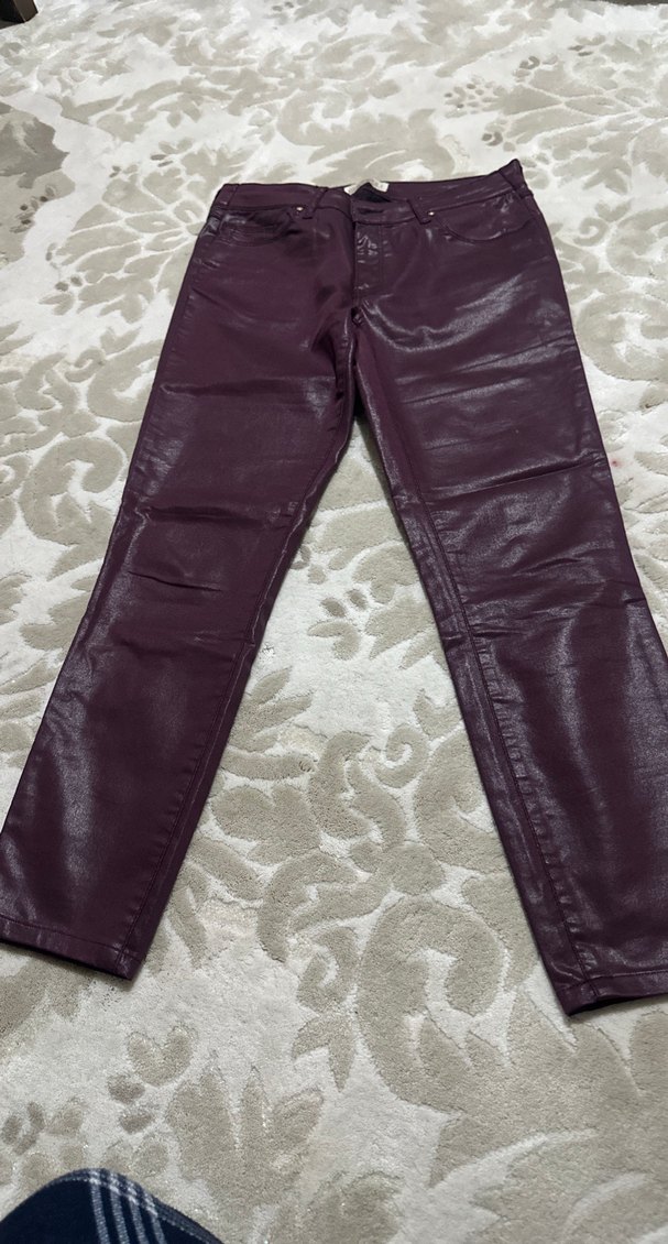 Bordo renk, normal boy ve kemerli deri pantolon. Günlük ve sokak stiline uygun rahat kesim.