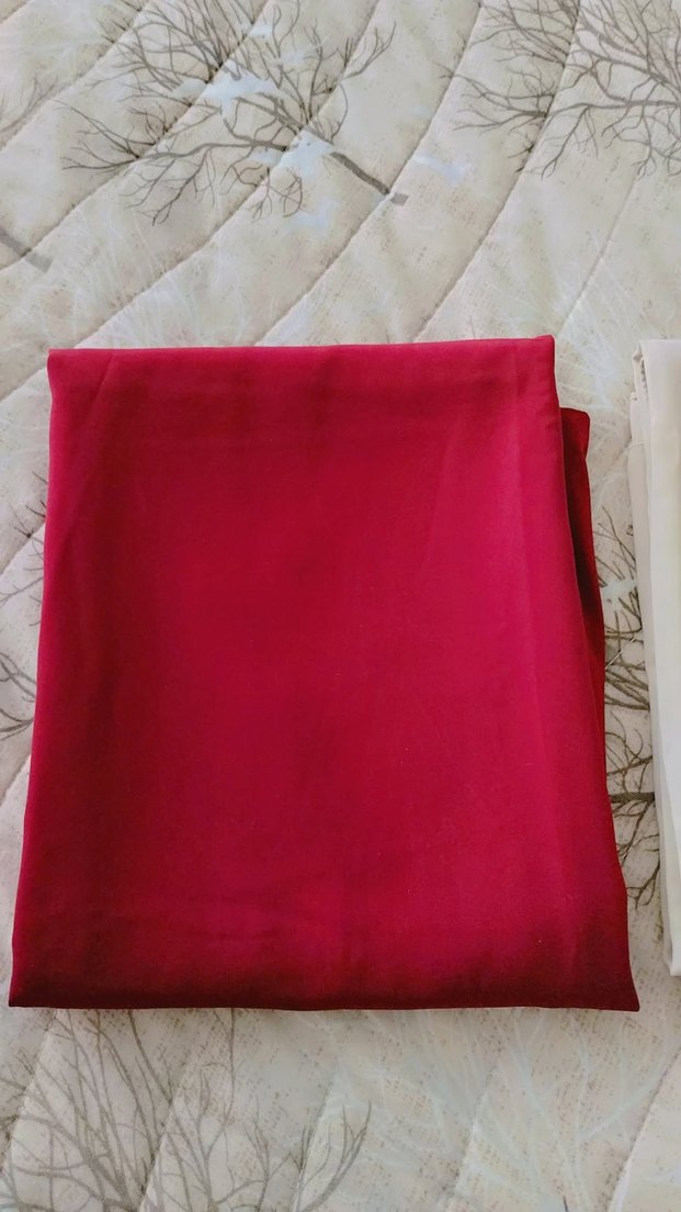 Bordo renkli, parlak sentetik kumaştan yapılmış, drapeli tasarıma sahip kadın şalı. Minimalist ve çağdaş tarzda.