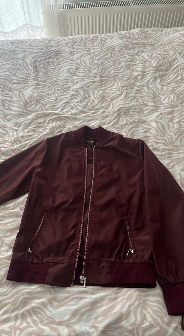 Bordo Kadın Fermuarlı İnce Ceket