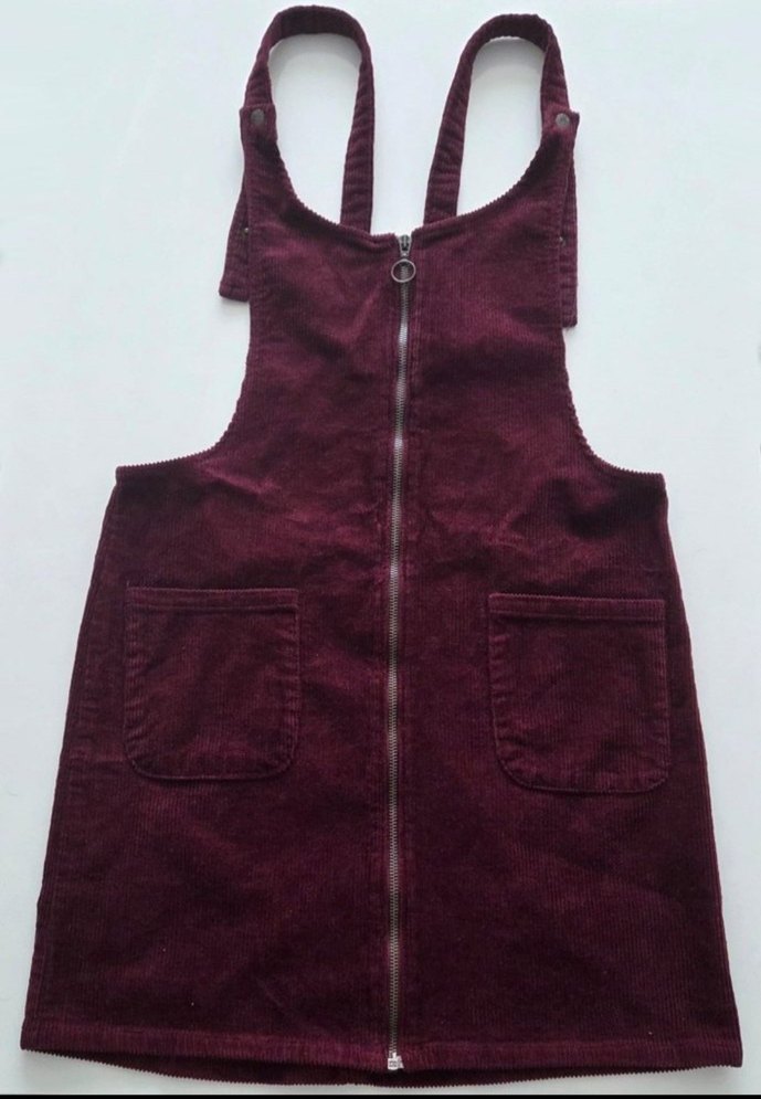 Bordo,Mürdüm arası renkte,fitilli kadife kumaştan, fermuarlı ve yüksek yakalı, kolsuz, fitted kesim midi salopet. İki ön ceplidir, günlük sokak stili için uygundur.renk görseldeki gibidir