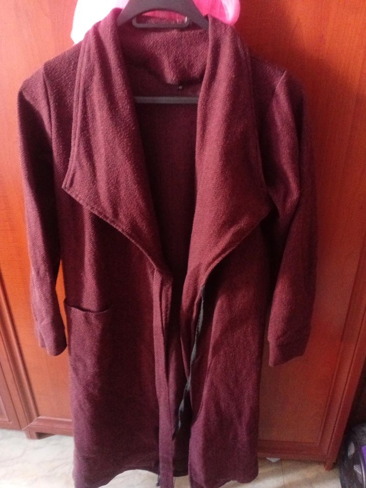 Bordo kaban, uzun kollu ve yaka detaylıdır. Yumuşak kumaştan, bol kesim ve drapeli tasarıma sahiptir. Günlük kullanıma uygundur. Hem hırka hem serin havalarda ince kaşe olarak kullanılabilir.