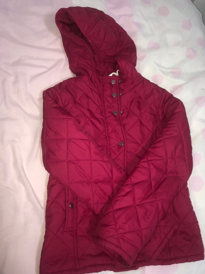 Bordo renkli, düğmeli ve kapüşonlu kadın montudur. Orta boy, dar kesim ve uzun kolludur. Yumuşak ve sıcak fleece kumaştan yapılmıştır. Günlük kullanıma uygundur.