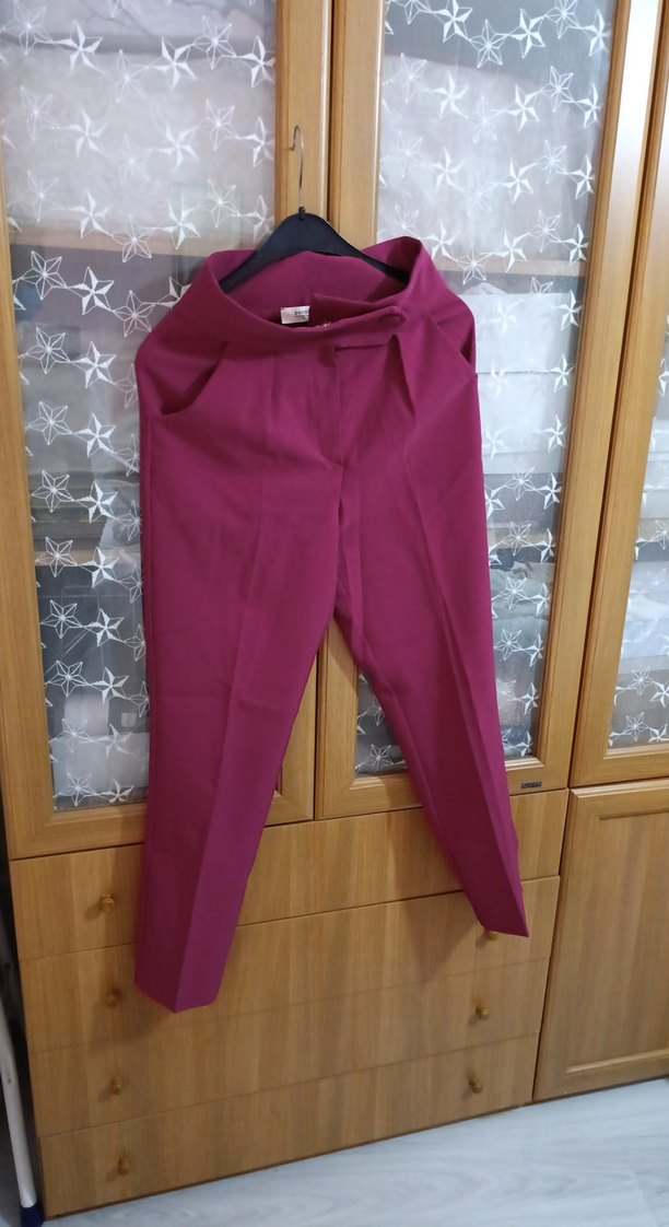 Bordo renkli, kemerli, ipeksi kumaştan yapılmış, midi boy ve regular fit pantolon. Ofis ve günlük şıklık için ideal. ✨