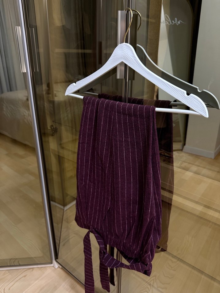 Bordo Kadın Keten Piliseli Kumaş Pantolon