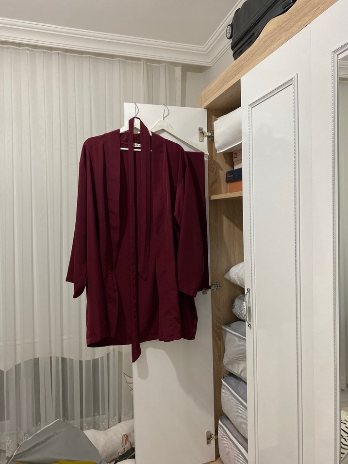 Bordo renkli, uzun kollu, normal midi boy, salaş kesim kadın takım kimono tesettür Minimalist ve normcore tarzda, desensiz tasarım. DOLABIMI BOŞALTIYORUM TOPLU ALIMDA İNDİRİMDE VARR!!!!