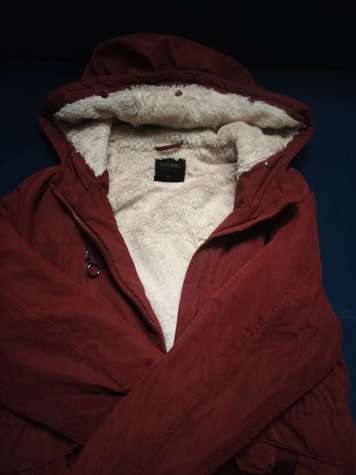 Bordo renkli, kürklü iç astarlı, uzun kollu, rahat kesim kışlık mont. Notched lapel yakaya sahip, günlük kullanıma uygun rahat ve sıcak tutan tasarım.