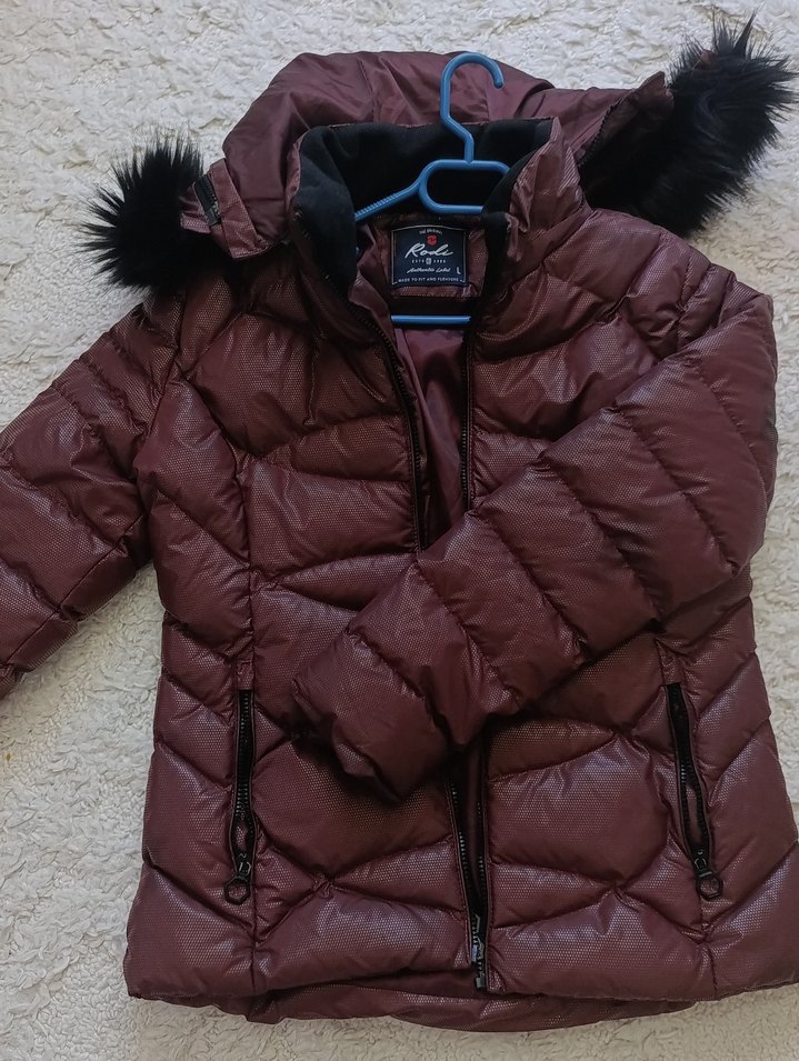 Bordo renk, kürklü detaylı, uzun kollu, normal boy midi kadın kışlık mont. Sıfır ayarinda .2 kez giyildi .Sapkasi çıkarılabilir