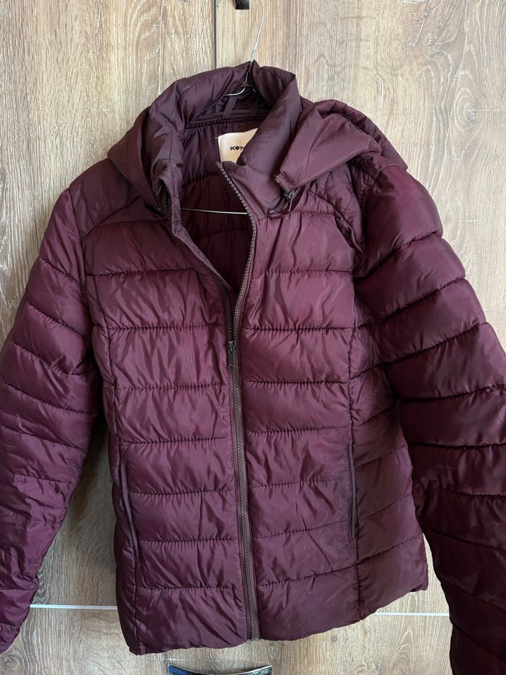 Bordo renkli, kadın kışlık mont. Notlu yaka ve uzun kollu, fermuarlı önüyle rahat ve şık bir günlük sokak giyimi parçasıdır. ❄️