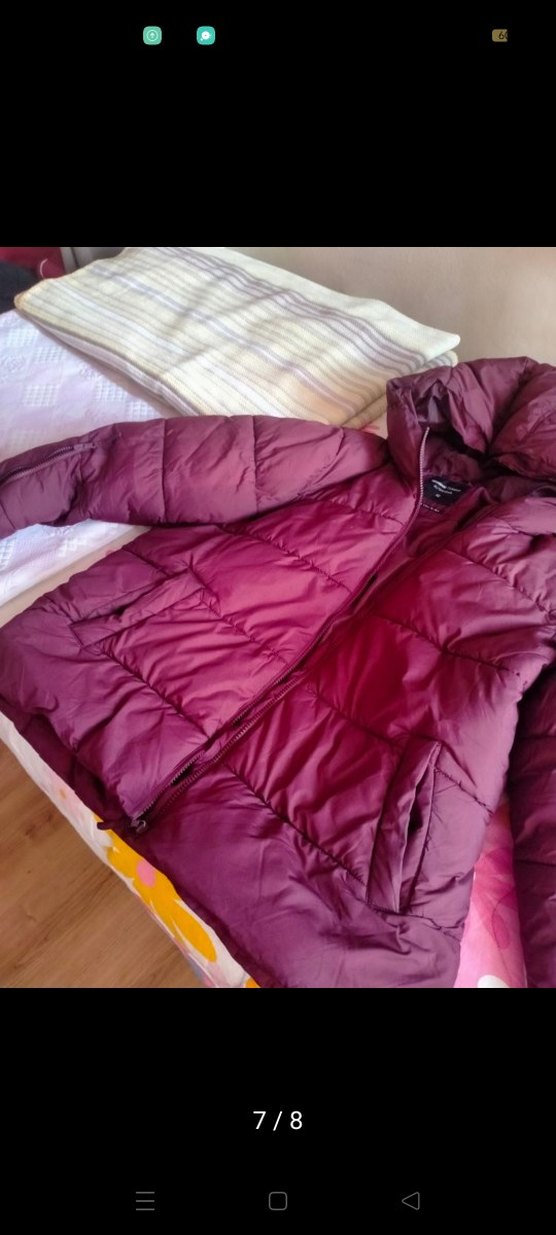 Bordo renkli, yüksek yakalı ve uzun kollu, fermuarlı kapamaya sahip, sıcak ve yumuşak kumaştan yapılmış dar kesim midi kışlık mont. Günlük kullanıma uygundur. ❄️