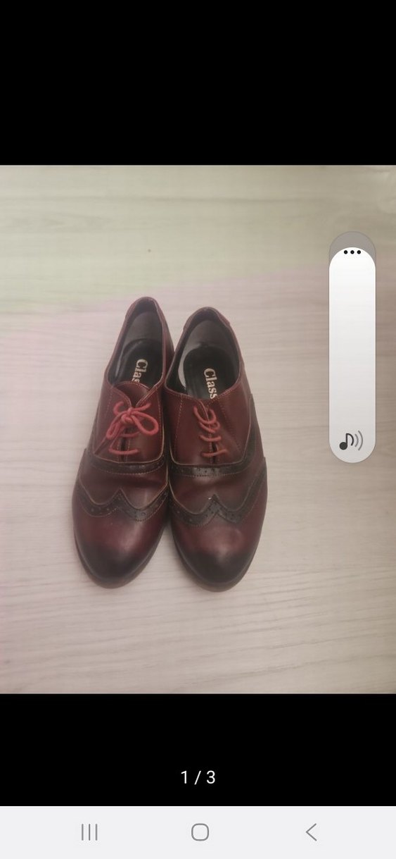 Bordo kadın klasik ayakkabı, dolgu topuklu ve düğmeli tasarıma sahip, desensiz yüzeyli. Ofis kullanımı için uygundur.