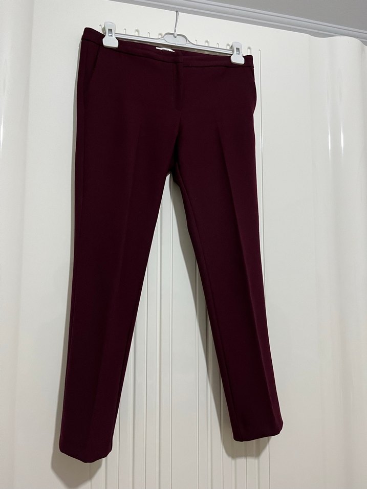 Bordo renkli kadın kumaş pantolon,normal kesim. Kalın kışlık kumaştan ofis için şık ve rahat bir tercih.