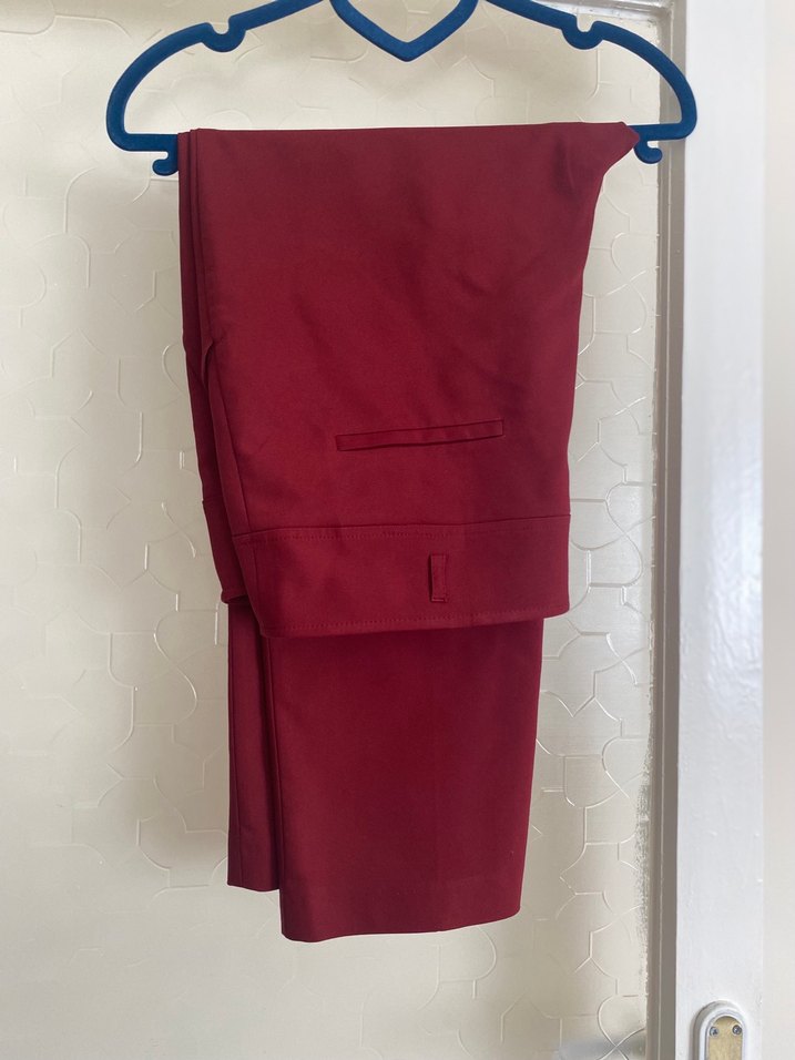ÇİĞDEM MARKASI bu marka kumaş pantolonda iyi bir markadır. Bordo renk kadın kumaş pantolon, normal kesim. üzerinde 48 beden yazıyor ama 44 bedene 46 bedene olur dar kalıplı