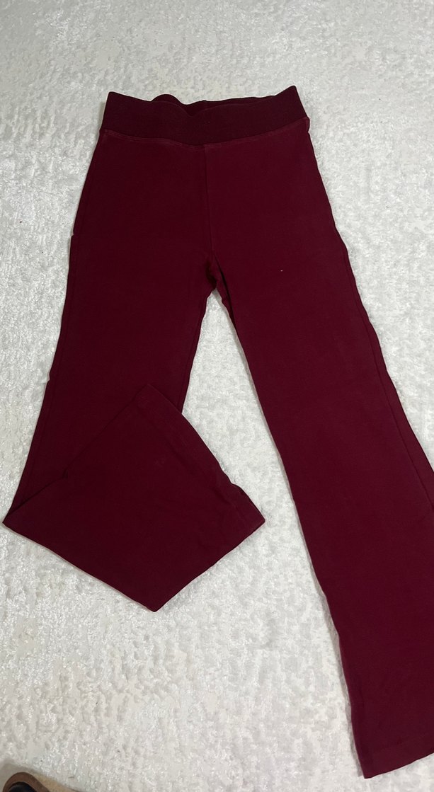 Bordo renk, rahat ve yumuşak kumaştan yapılmış, midi boy ve dar kesim kadın pantolonu, günlük kullanım için şık ve konforlu.
