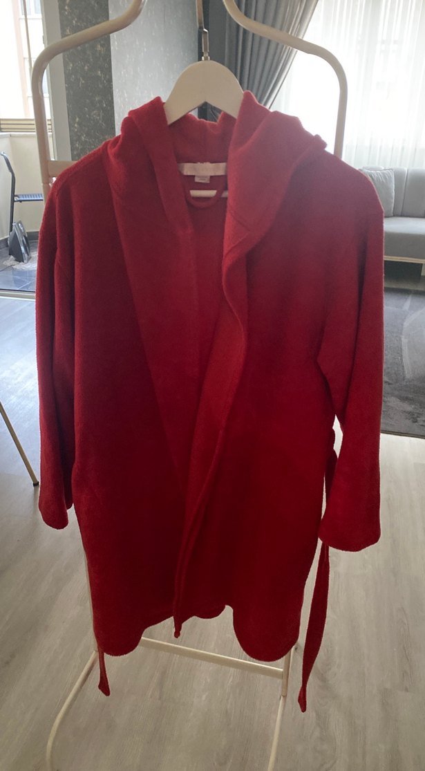 Bordo renkte, uzun kollu, midi boy ve salaş kesim kadın sabahlık, rahat ve sade tasarımıyla dikkat çekiyor. ️