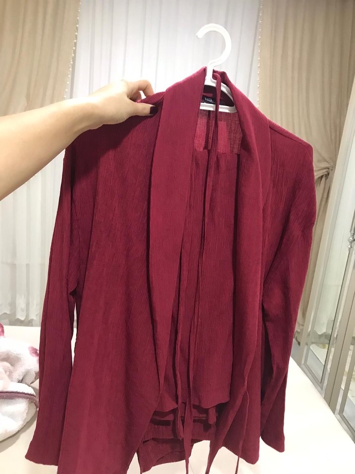 Bordo renkli kadın hırka, midi boy ve uzun kolludur. Salaş kesimiyle minimalist ve normcore tarzındadır. Desensiz, koyu renk seçeneklidir.