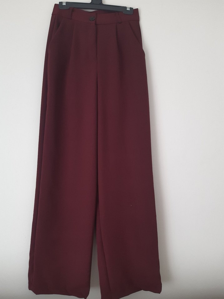 Bordo midi uzunlukta, düz kesim kumaş pantolonlar. Minimalist ve normcore tarzıyla, ofis için uygun, şık ve rahat bir görünüm sunar.