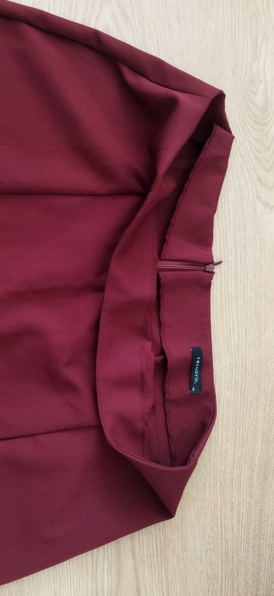 Düz, bordo renkte, normal boy midi kumaş pantolon. Fermuarlı ve regular fit kesim, ofis kullanımı için uygun. ✨