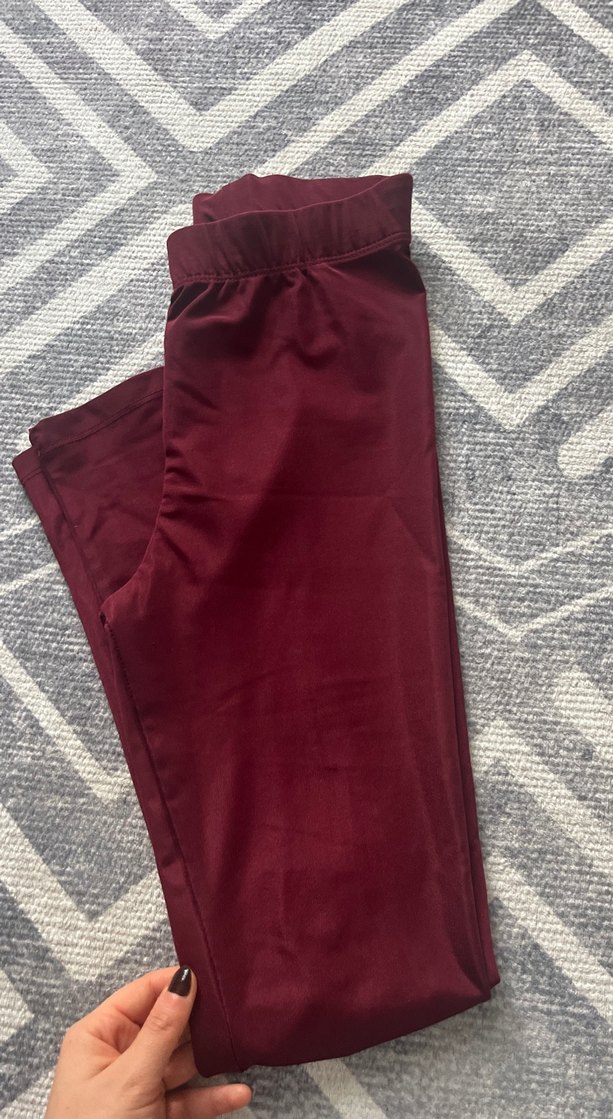 Bordo renkli, düz ve sentetik kumaştan yapılmış, midi boyda ve vücuda oturan kadın taytı. Günlük kullanım için rahat ve şık bir tercih.