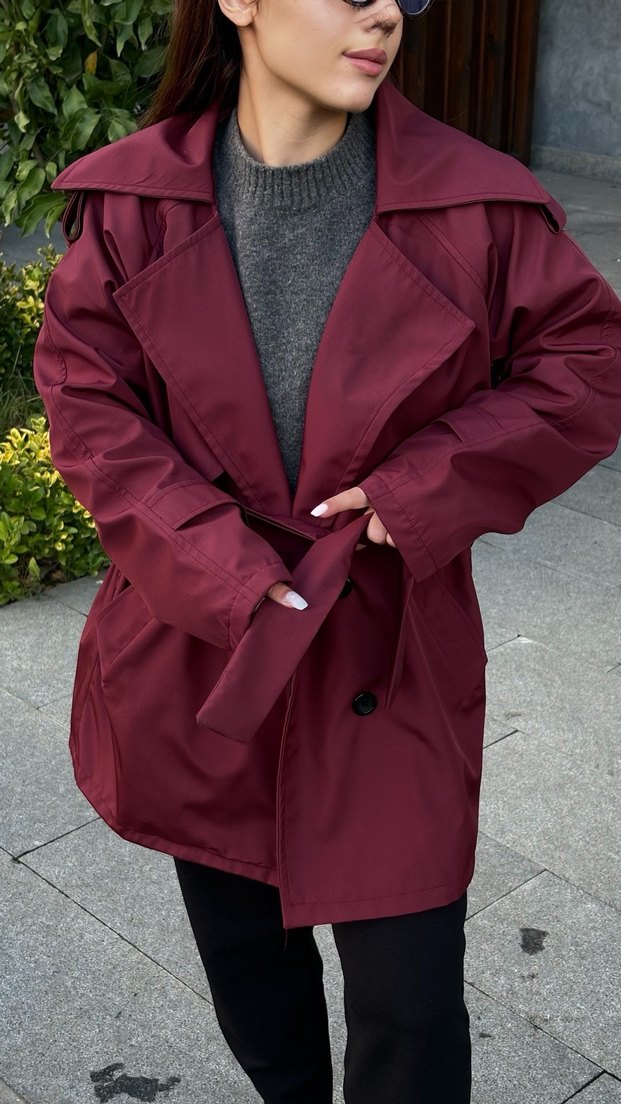 Bordo Kadın Midi Trençkot