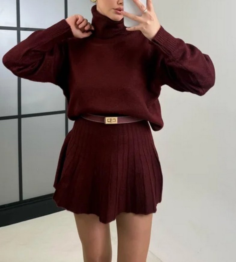 Bordo Kadın Örgü Salaş Triko alt üst takım