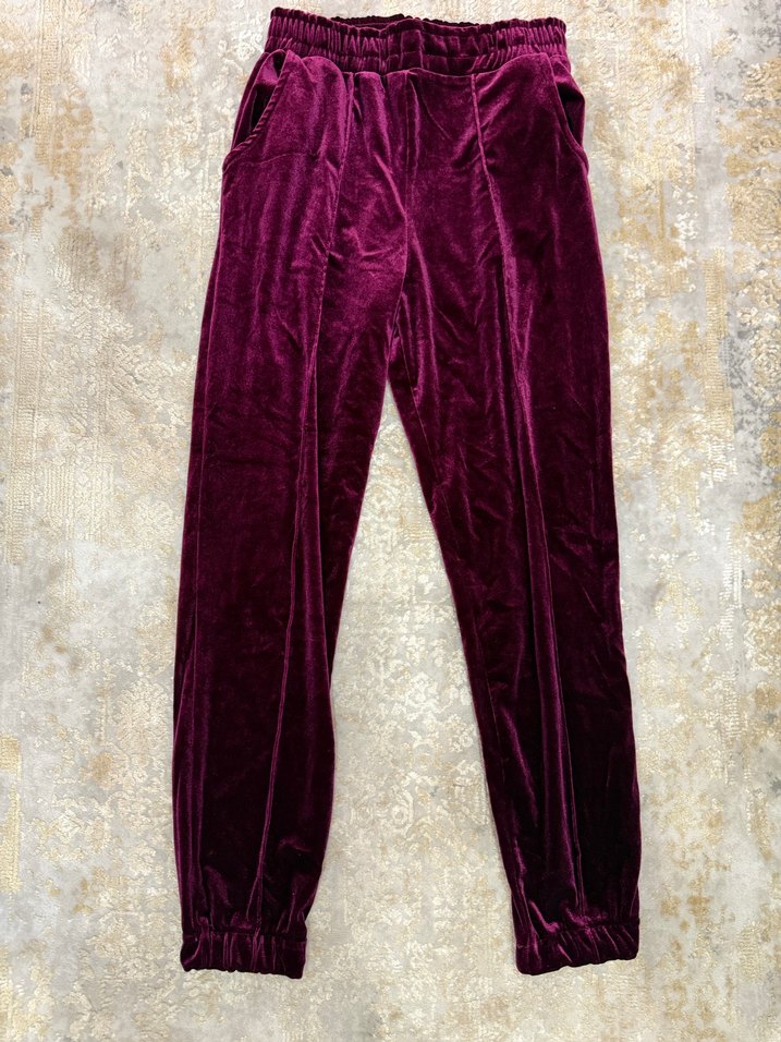 Bordo renkli, peluş detaylı, rahat kesim ve normal midi boyda, elastik bel bantlı kadın eşofman.