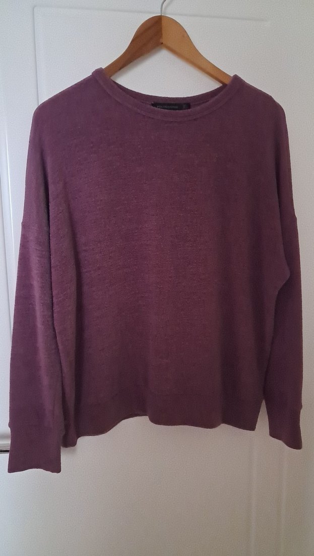 Bordo renk, penye yumuşak malzemeden yapılmış, bisiklet yakalı ve uzun kollu salaş kesim kadın kazak. Rahat ve sade tasarımıyla günlük kullanıma uygundur. koltukaltından 70 cm lastik kısmı 60 cm omuzdan boy 65 cm