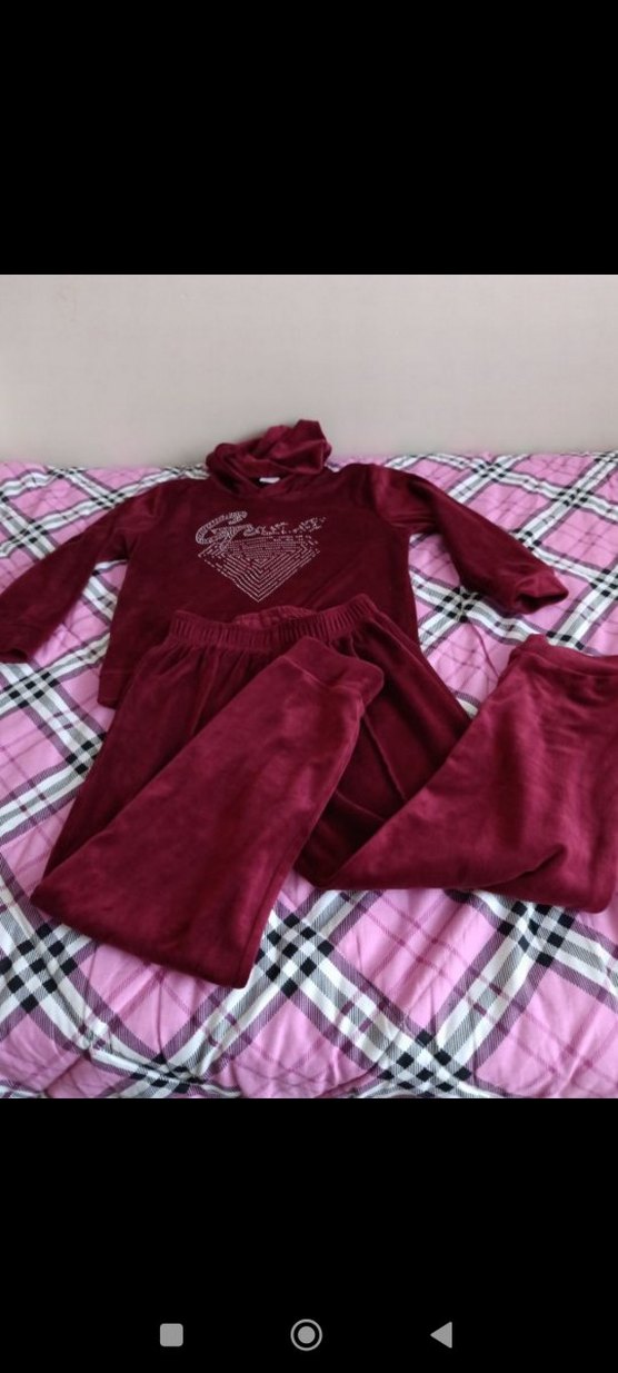 Bordo renkli, rahat kesim ve uzun kollu kadın pijama takımı. Yumuşak kumaştan yapılmış, midi boy üst ve uyumlu pantolon içerir.