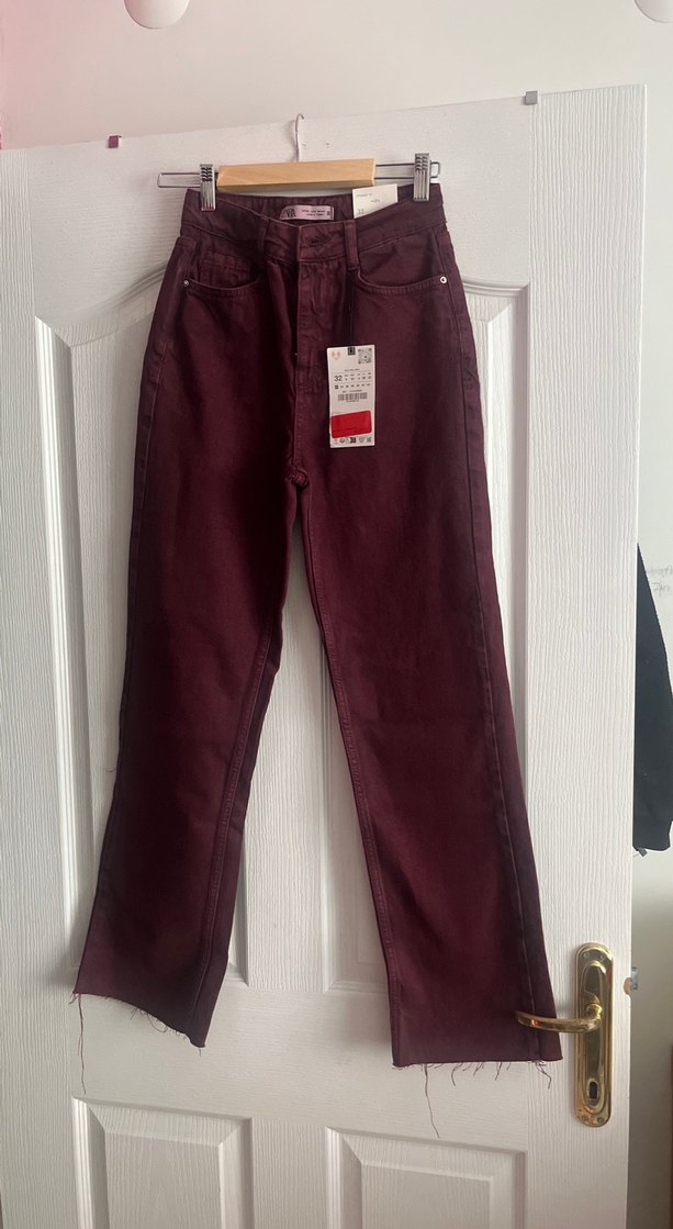Bordo renkli, regular fit ve midi boy kadın jean. Günlük kullanıma uygun, rahat ve şık bir normcore tarzı sunar.