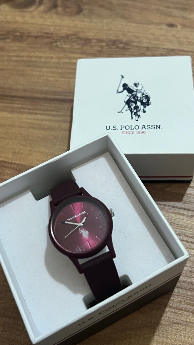 U.S. Polo Assn. marka bordo kadın saatte kayışlı toka ve markanın logosu bulunan koyu kadran vardır, trend sokak stili için uygundur. Ürün orijinaldir.Sadece flaş tutulduğunda belli olan çizikleri var.Az kullanıldı.Teklif verebilirsiniz ancak komisyon dolayısıyla yüksek fiyat koymak durumundayım.İyi alışverişler.