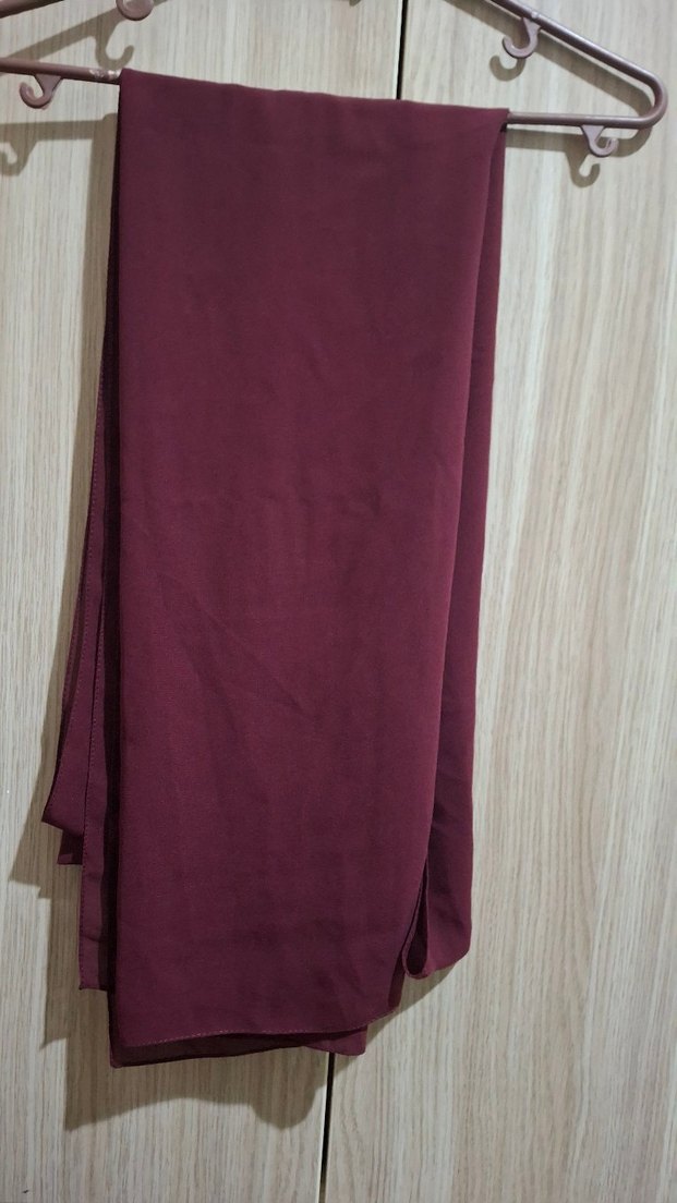 Bordo renkte, sentetik kumaştan yapılmış, şal