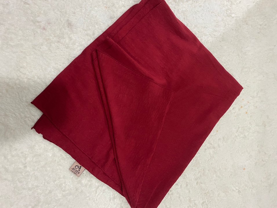 Bordo parlak, yumuşak ve şal şeklinde kadın şalı, drapeli tasarımıyla rahat ve bohem bir stil sunar. Sade ve temel bir parçadır.