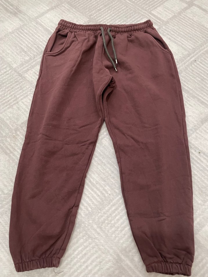 Bordo renk, salaş kesim, lastikli bel ve paça, yumuşak ve sıcak kumaştan yapılmış kadın eşofman altı. 1 kez tek kullanıldı