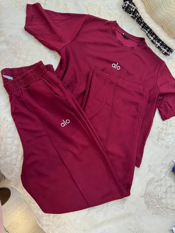 Bordo renkte, kısa kollu, yuvarlak yaka, salaş kesim kadın eşofman takımı. Yumuşak ve sıcak kumaştan, desen içermeyen sade tasarım. Günlük rahat kullanım için uygundur. ♀️