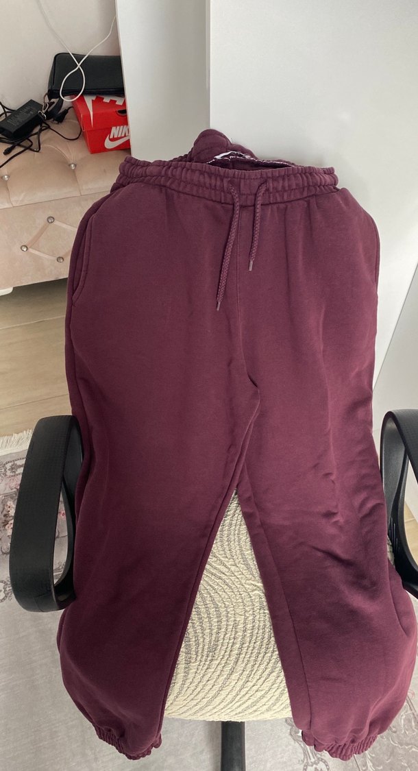 Bordo renkli, salaş kesim midi uzunlukta kadın eşofman altıdır. Elastik bel ve bağcık detaylarıyla rahatlık sağlar. Yumuşak sentetik kumaştan üretilmiş, günlük kullanıma uygun şık ve rahat bir parçadır.