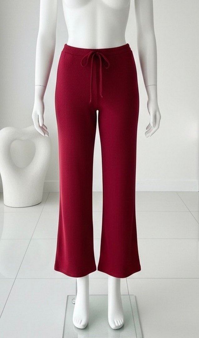 Bordo renkli, salaş kesim, piliseli alt eşofman Belinde bağcıklı, midi boyda ve yumuşak sentetik kumaştan üretilmiştir. Günlük kullanıma uygundur.